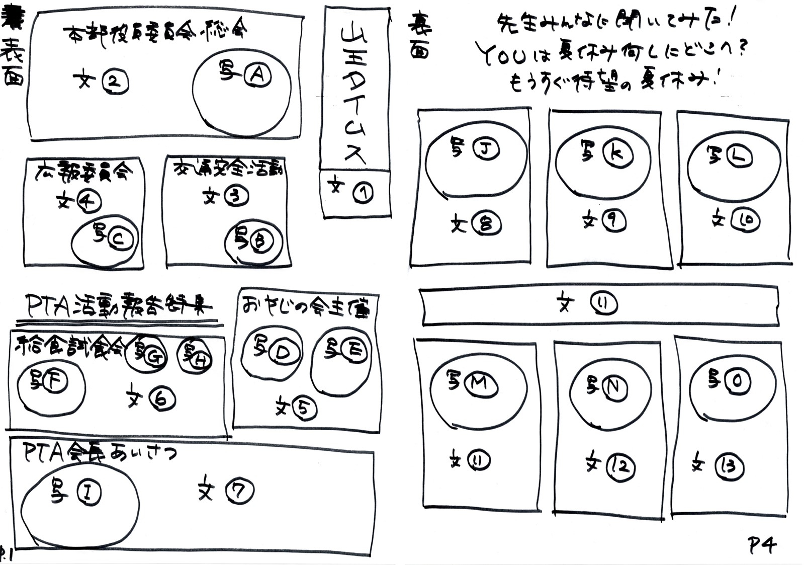 PTA広報誌のミカタ 手書きレイアウト制作サンプル